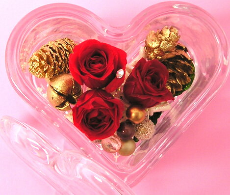 名称:プリザーブドフラワー 内容ガラスキューブサイズ::9L×7.5W×6.5H 花材:レッドローズ3輪 チャーム:ゴールド木の実、グリーンリーフ、ゴールドマーブル、かすみ草、スワロフスキー粒 ※チャームは在庫状況により変更することが御座います。