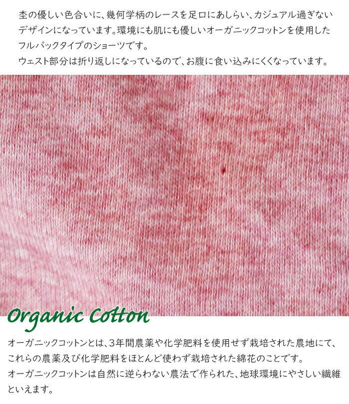 環境にも肌にも優しいオーガニックコットンを使用したフルバックタイプのショーツです。