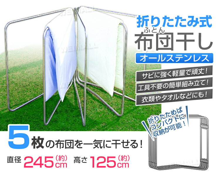 5枚の布団を一気に干せる! オールステンレス製ふとん干しです。