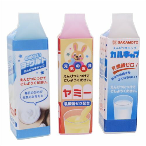 彡こちらは紙パック型の【パロディ鉛筆キャップ3個セット】ペンケースの中で芯が折れにくくなるよ◎かわいい文房具いろいろあるのでお気に入りで揃えてね☆